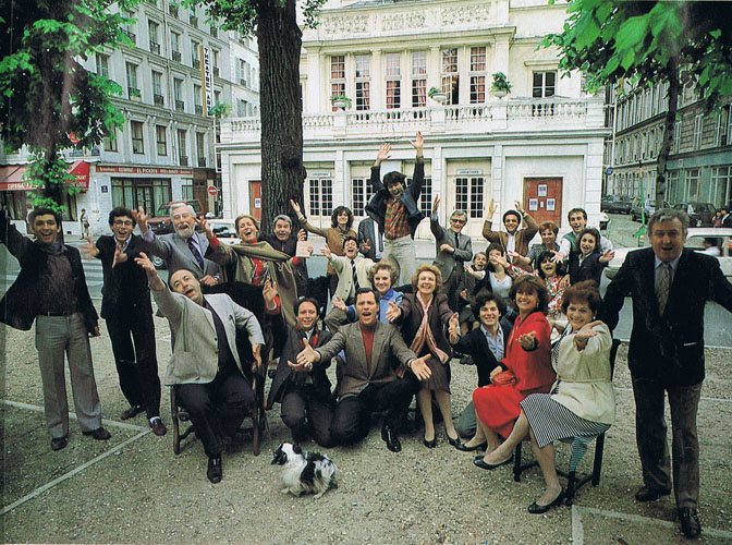 Devant le Théâtre Hébertot, Jean-Laurent Cochet, Claude Giraud, Odette Laure, Jacques Eyser, Danielle Volle, Michèle André, Liliane Sorval, Danielle Ajoret, Max Fournel et toute la troupe