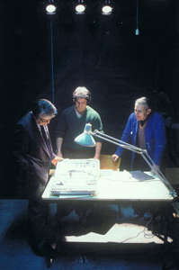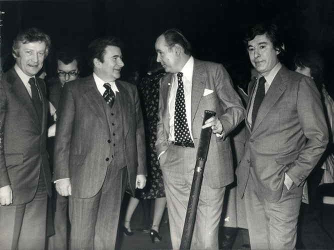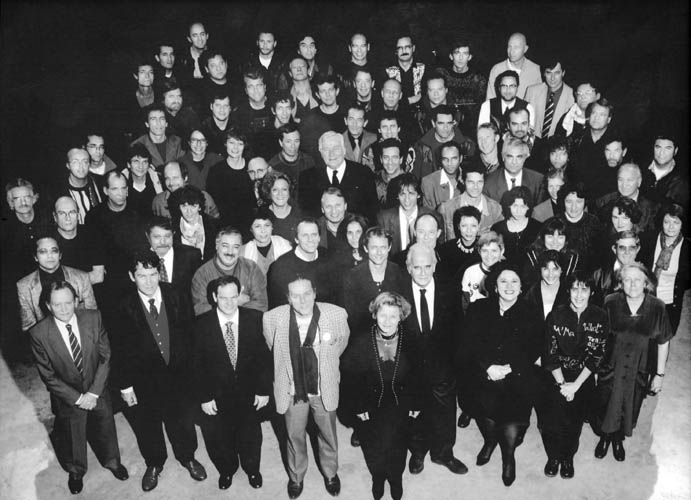 Serge Bouillon au centre du groupe. Outre ses collaborateurs, on reconnaît Gérard Mollard du Ministère de la Culture, Michel Hellec, Jérôme Hullot et Patrick Ferrier, Luc de Sédano Délégué général de l’Association pour le soutien du Théâtre Privé