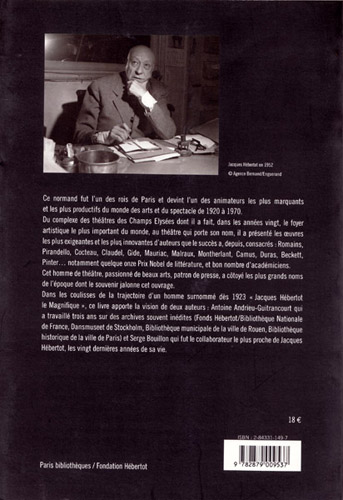 Jacques Hébertot, le magnifique, coécrit, avec Antoine Andrieu-Guitrancourt (Paris-Bibliothèque / Fondation Hébertot 2006)