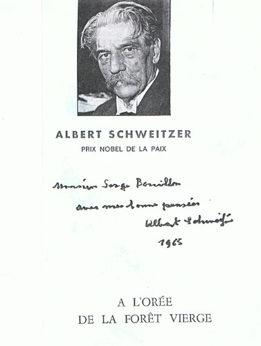 Dédicace d'Albert Schweitzer à Serge Bouillon