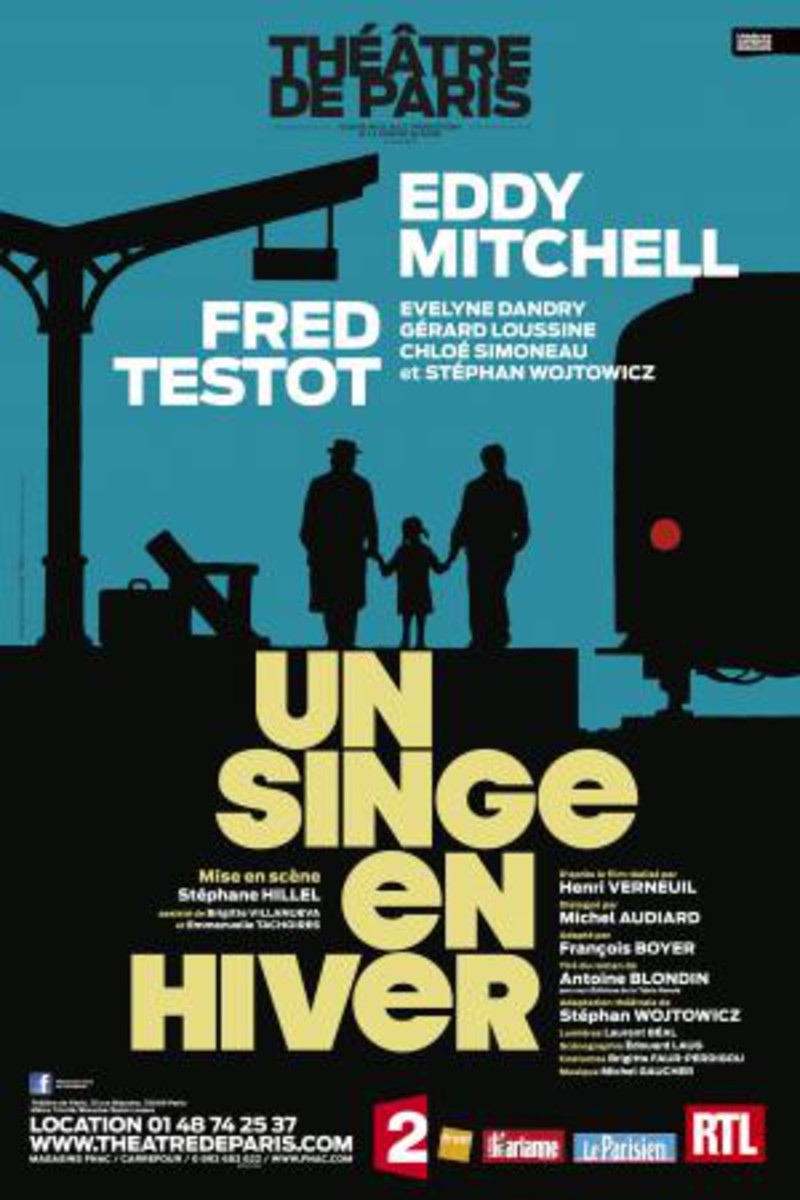 RésuméGabriel Fouquet arrive un soir d’automne dans l’hôtel tenu par Albert Quentin sur la côte normande. Une amitié va naître entre les deux hommes. L’un boit, l’autre ne boit plus. On se souvient du film de Henri Verneuil, du feu d’artifice et de cette cuite mémorable entre le jeune et le vieux où il est question de Yang-Tsé-kiang, de Manolete, de Joselito, de fusiliers marins... On se souvient des répliques de Michel Audiard, fidèle à l’esprit et à l’humour d’Antoine Blondin, dont certaines sont devenues cultes : « - Les Princes de la cuite ! Les Seigneurs ! Ils vous laissent à vos putasseries, les Seigneurs ! Ils sont à 100 000 verres de vous ! Eux, ils tutoient les anges ! » « - Dis-toi bien que si quelque chose devait me manquer, ça serait plus le vin, ça serait l’ivresse. » On aurait tort, pourtant, de réduire le roman d'Antoine Blondin à un éloge de l’alcoolisme. «Un singe en hiver», c’est presque le contraire, c’est l’histoire d’un homme à l’automne de sa vie qui cherche jusqu’au bout à protéger son ami contre les conséquences accablantes de l’ivresse. Il reconnaît peut-être aussi en lui le fils qu’il n’a pas eu. Eddy Mitchell et Fred Testot reprennent avec complicité et gourmandise les rôles tenus au cinéma par Jean Gabin et Jean-Paul Belmondo.