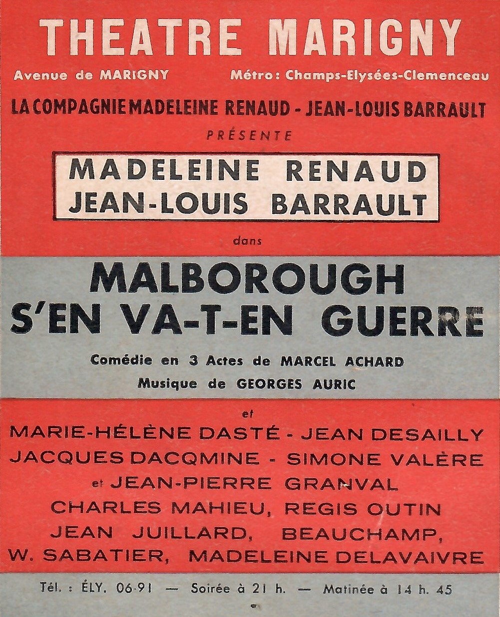 Jacques DACQMINE (Malborough), Jean DESAILLY (Howard), Jean JUILLARD (Premier z'officier), Charles MAHIEU (Deuxième z'officier), Régis OUTIN (Troisième z'officier), Jean-Pierre GRANVAL (Quatrième z'officier), Ed. BEAUCHAMP (Rackam), Jean-Louis BARRAULT (Lafleur), Pierre SABATIER (Le courrier), Marie-Hélène DASTE (Anne Stuart, Reine d'Angleterre), Madeleine RENAUD (Sarah Jennings, duchesse de Malborough), Simone VALERE (Bettina, suivante de la duchesse), Madeleine DELAVAIVRE (Jeanne),