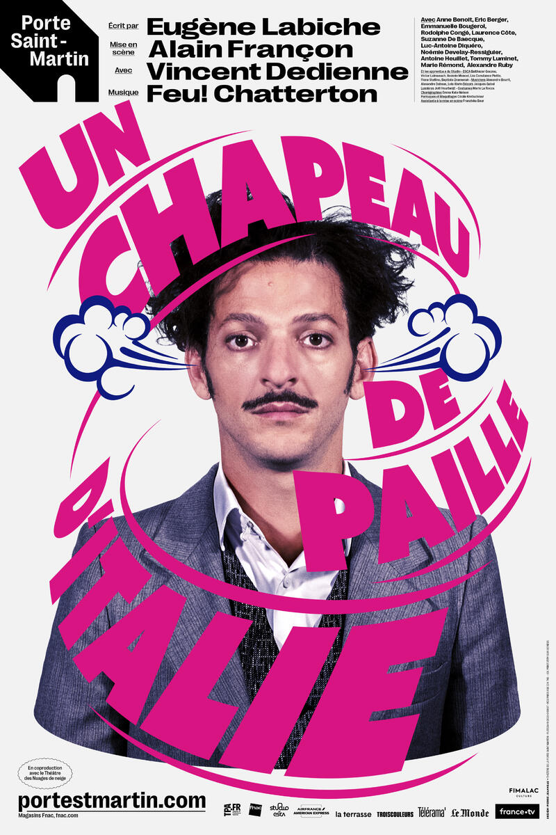 RésuméLe chef d’œuvre comique de Labiche, mis en scène par Alain Françon avec Vincent Dedienne en Fadinard, menant sur des rythmes de Feu! Chatterton, une trépidante cavalcade à la poursuite du fameux chapeau de paille d’Italie.