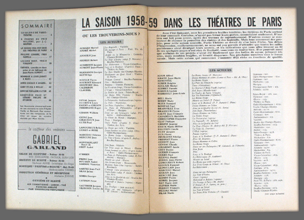 Tennessee Williams, Balpétré, Peter Brook, Jean Anouilh, Jean-Louis Barrault et Edwige Feuillère