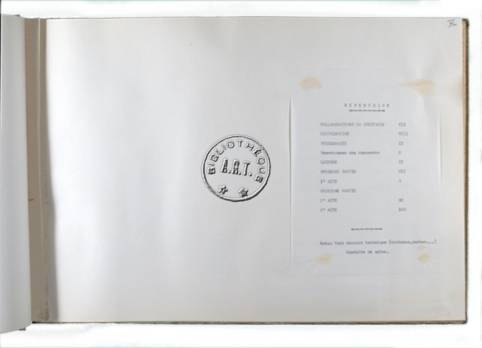 6. Mise en scène de Pierre Franck, décors de Jacques Marillier, direction technique de Gérard Kéryse, assistant Michel Hardy, régisseur général Jean-Pierre Le Proux