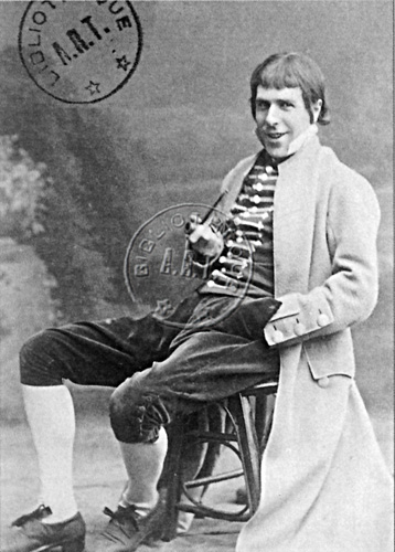 C>omme son frère aîné Constant, il naît à Boulogne-sur-Mer le 16 mai 1848. À quinze ans, il part dans une institution en Angleterre pour y apprendre l'anglais en échange de leçons de français. Ce n'est pas une réussite et très vite, il demande à rentrer à Boulogne. Son père lui obtient une place d'employé à la Compagnie des Chemins de fer. Mais la vente des billets et l'enregistrement des bagages ne le passionnent guère. Dès que ses chefs ont le dos tourné, il récite des vers, se lance dans des tirades ou des fragments de scènes héroïques de Ruy Blas ou du Cid...