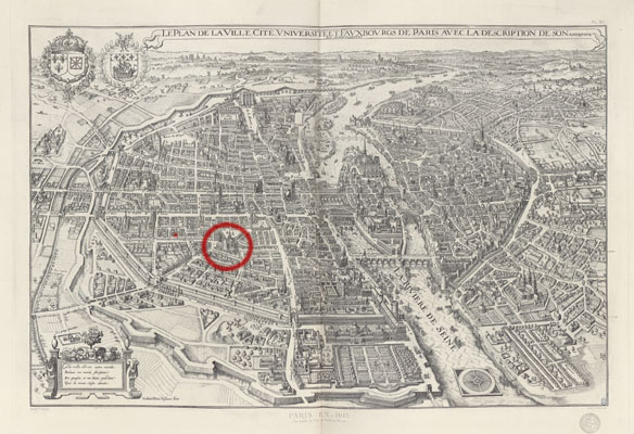 Plan de Paris en 1615 - L'Église Saint-Eustache dans le cercle