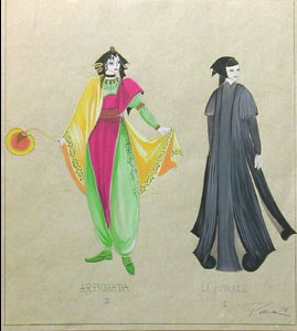 Commedia dell'Arte - Évolution du costume des personnages entre 1500 et 1858, dessins de Maurice Sand - 1860.