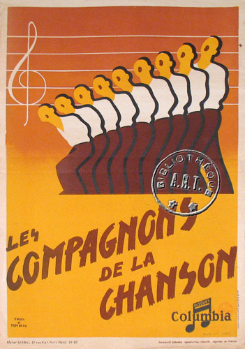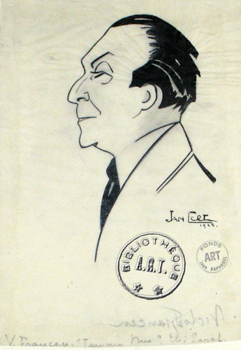 Caricatures de chansonniers d'après-guerre, dessins d'Adrien Pech