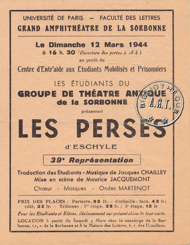 Antigone de Sophocle et Les Perse d'Eschyle par le Groupe de Théâtre antique de la Sorbonne (vers 1944)