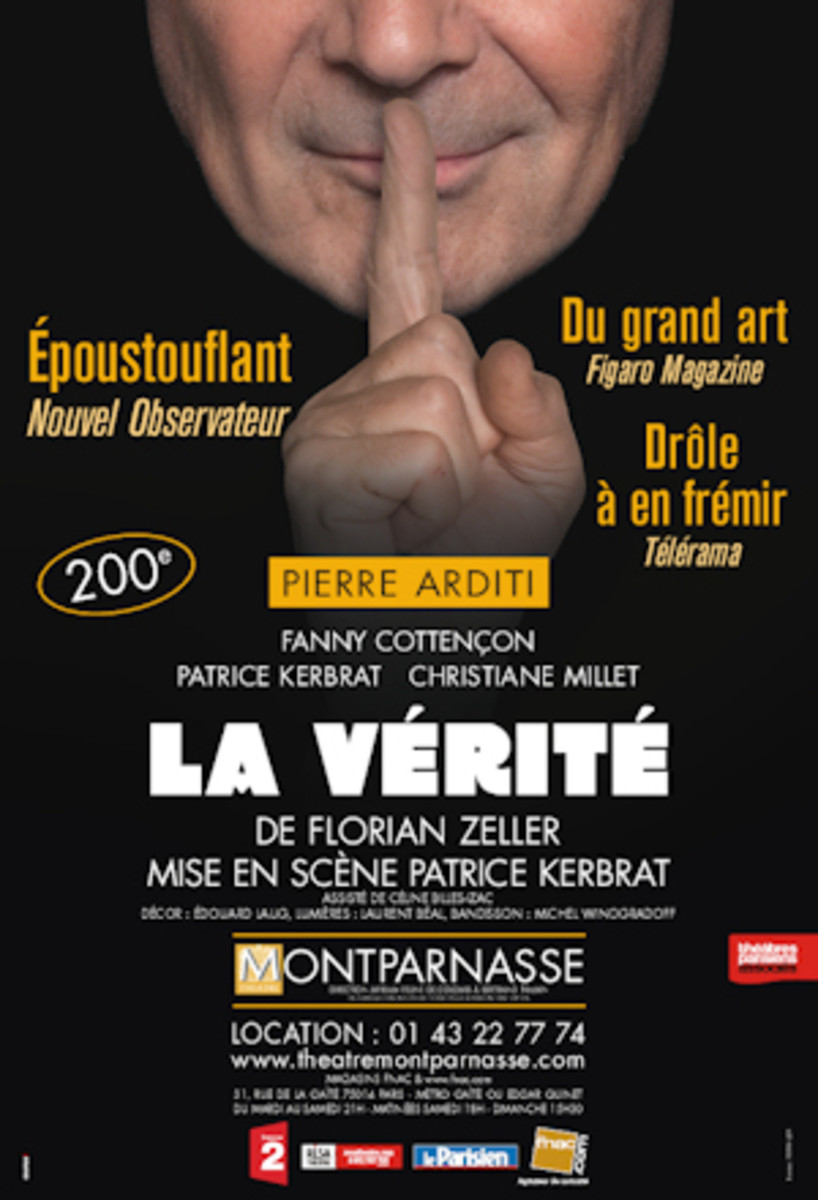 La Vérité est une comédie sur le mensonge. « Le mensonge n’est un vice que quand il fait du mal, disait Voltaire. C’est une très grande vertu quand il fait du bien ». C’est aussi ce que pense Michel (Pierre Arditi), qui a tout intérêt à dissimuler la vérité à sa femme (Christiane Millet), à son meilleur ami, ainsi qu’à sa maîtresse (Fanny Cottençon). Quand celle-ci lui apprend qu’elle n’en peut plus de ne pas « vivre dans la vérité » et qu’elle voudrait tout révéler à son mari, Michel doit la convaincre des inconvénients de la dire (la vérité) et des avantages de la taire. Quant sa femme le surprend en flagrant délit de mensonge, il doit tout faire pour écarter ses soupçons. Et quand son meilleur ami lui confie qu’il suspecte sa propre femme de le tromper, il doit se débrouiller pour ne pas être démasqué. Au final : beaucoup de transpiration et beaucoup de mauvaise foi... « La vérité, il n’y a que ça de vrai », leur assure-t-il, épuisé par tant d’efforts.