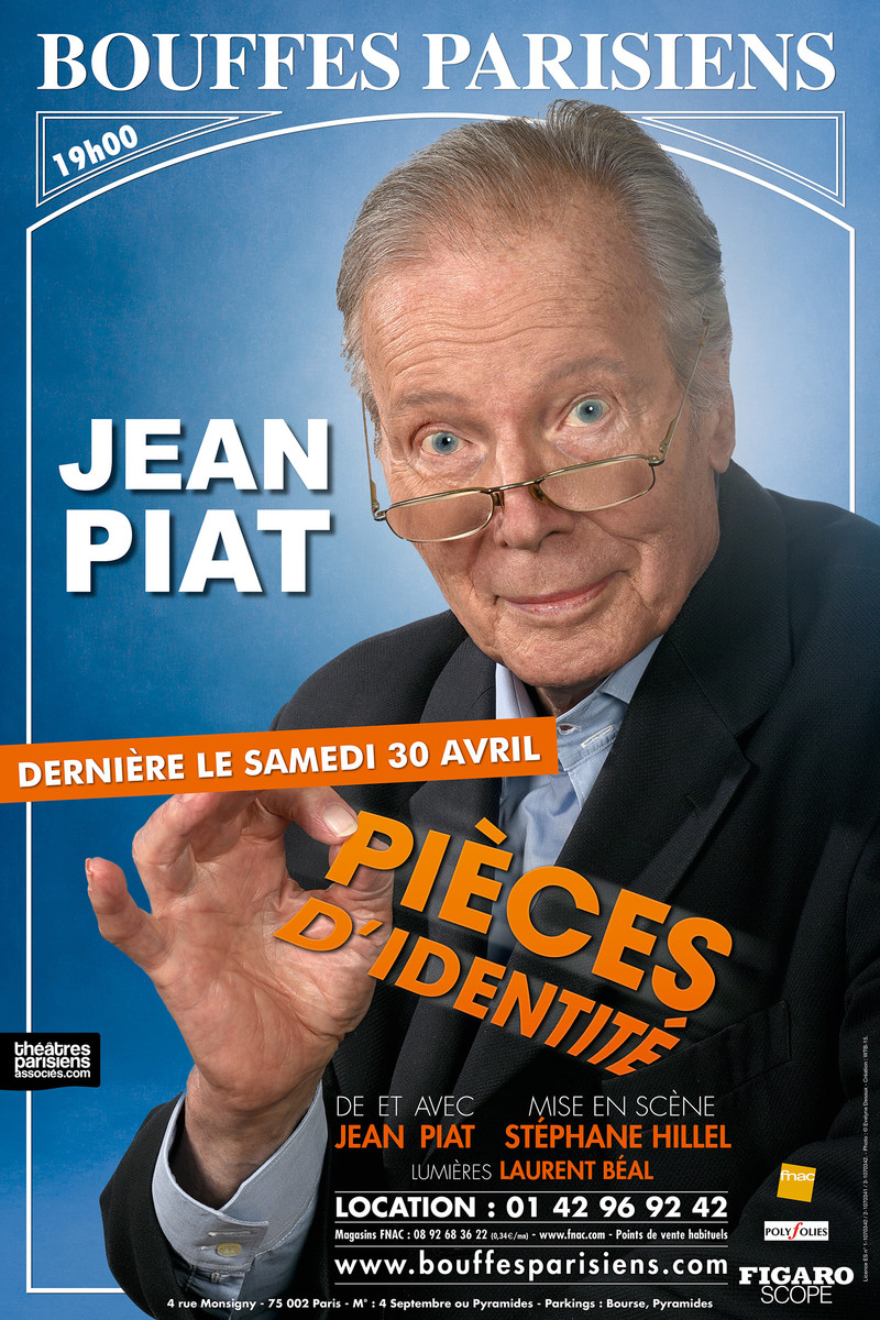 Par le bout du cœur, Jean Piat nous emmène avec lui dans une balade de sa prime jeunesse à aujourd’hui. Au hasard d'anecdotes savoureuses il nous conte ses rencontres avec les auteurs Guitry, La Fontaine, Beaumarchais, Musset, Feydeau Dorin, et les grands rôles qu'il a interprétés Figaro, Cyrano, Don César etc… et à la télévision, Lagardère et Robert d’Artois. On découvrira combien, au cours de ce long compagnonnage amoureux, l'homme réel et les personnages se sont mélangés au point de ne plus faire qu’un. Le propos est tour à tour vif ou grave, drôle ou touchant. L’œil brille de malice, le verbe scintille d'élégance. Et l'on comprend avec un infini bonheur comment ces petits morceaux de « Pièces d'identité » ont construit peu à peu le puzzle d'un immense homme de théâtre.