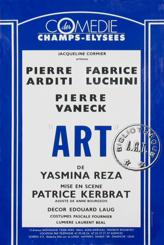 ![]() MOLIERE 1995 Meilleur Auteur Yasmina REZA Meilleur spectacle du Théâtre privé Nomination MOLIERE 1995 Meilleur Comédien Pierre ARDITI Pierre VANECK Fabrice LUCHINI Meilleur Metteur en Scène Patrice KERBRAT |