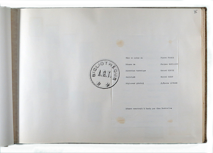 6. Mise en scène de Pierre Franck, décors de Jacques Marillier, direction technique de Gérard Kéryse, assistant Michel Hardy, régisseur général Jean-Pierre Le Proux